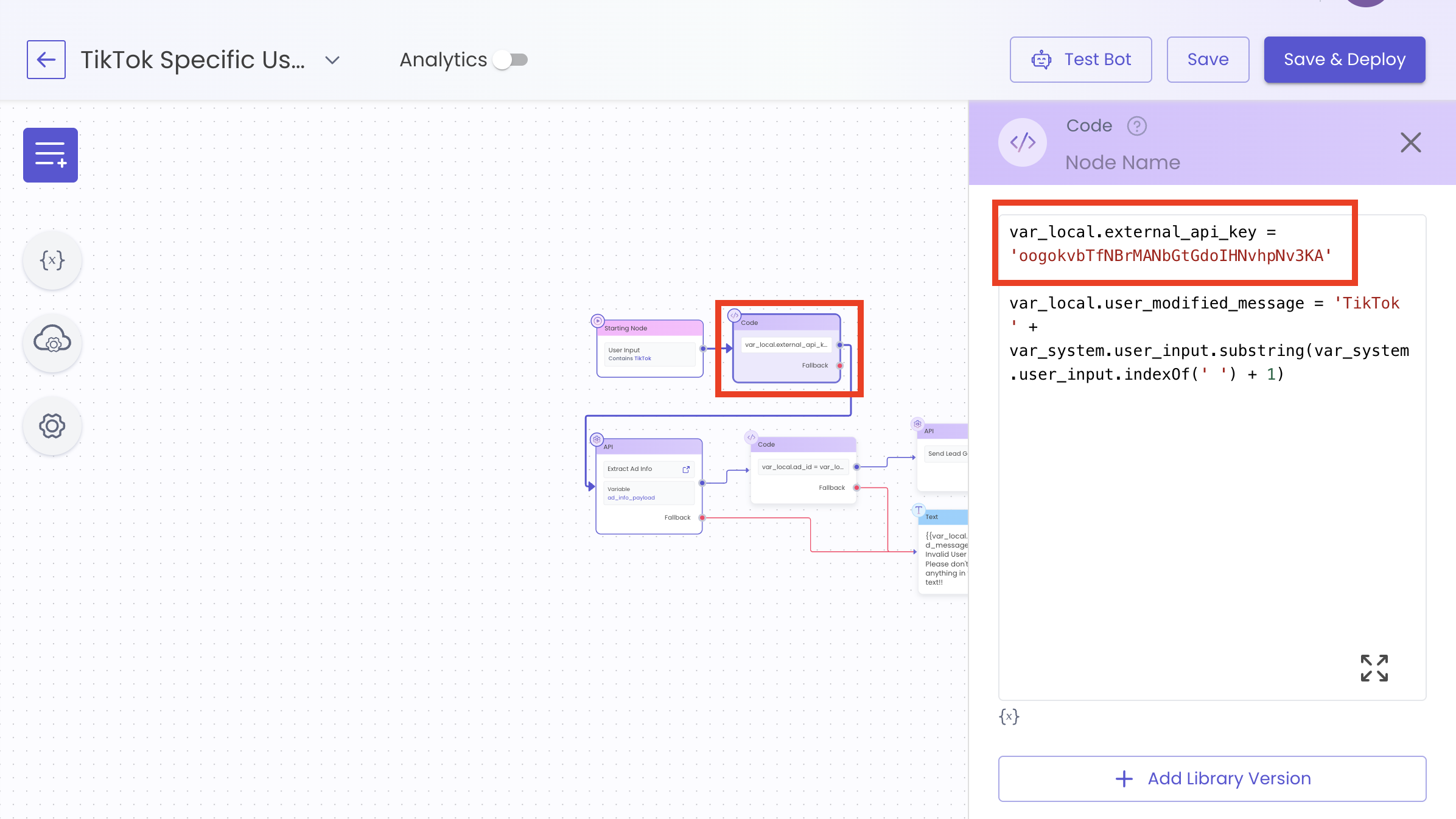 Step 5: Click on the first node and select "user input" and in the expression choose "contains" and add "TikTok"